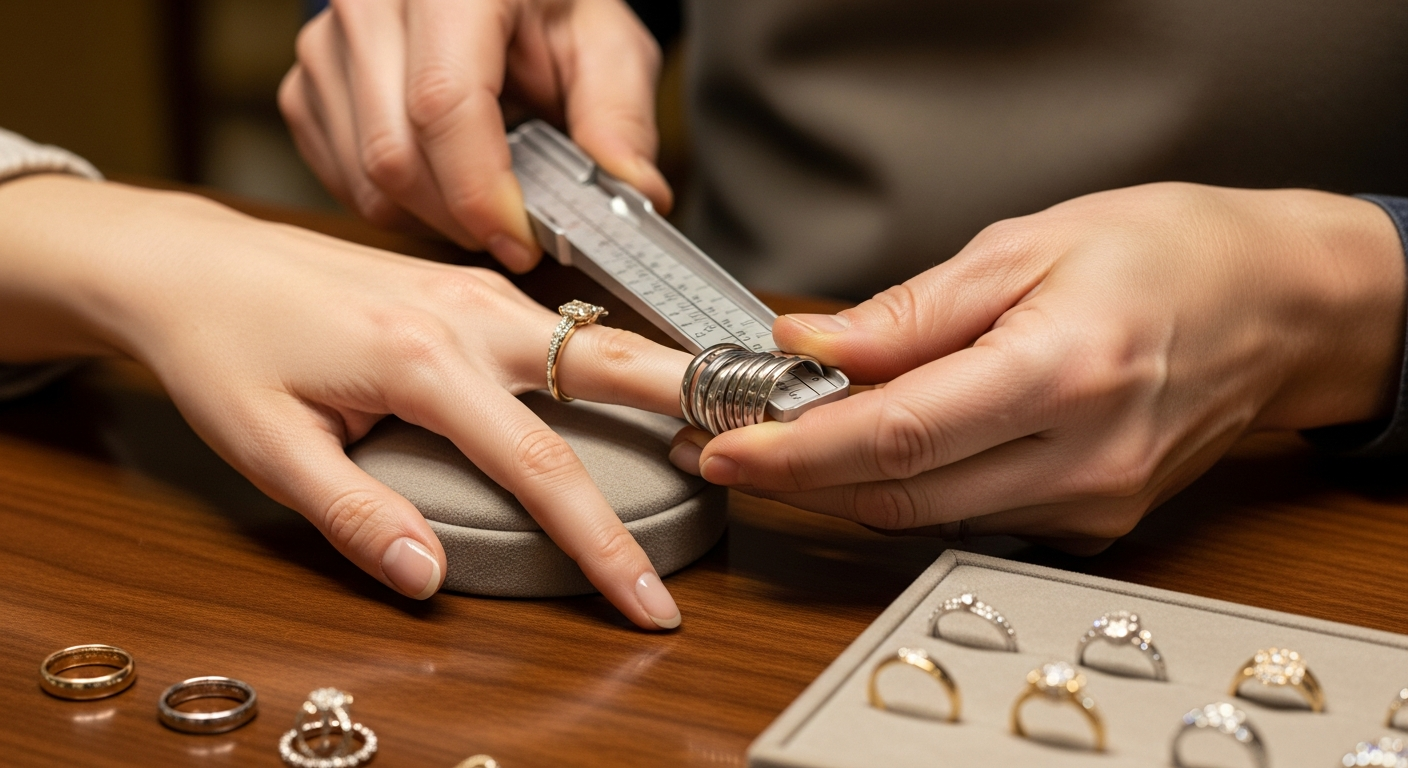 Đo kích cỡ nhẫn chuyên nghiệp tại cửa hàng trang sức